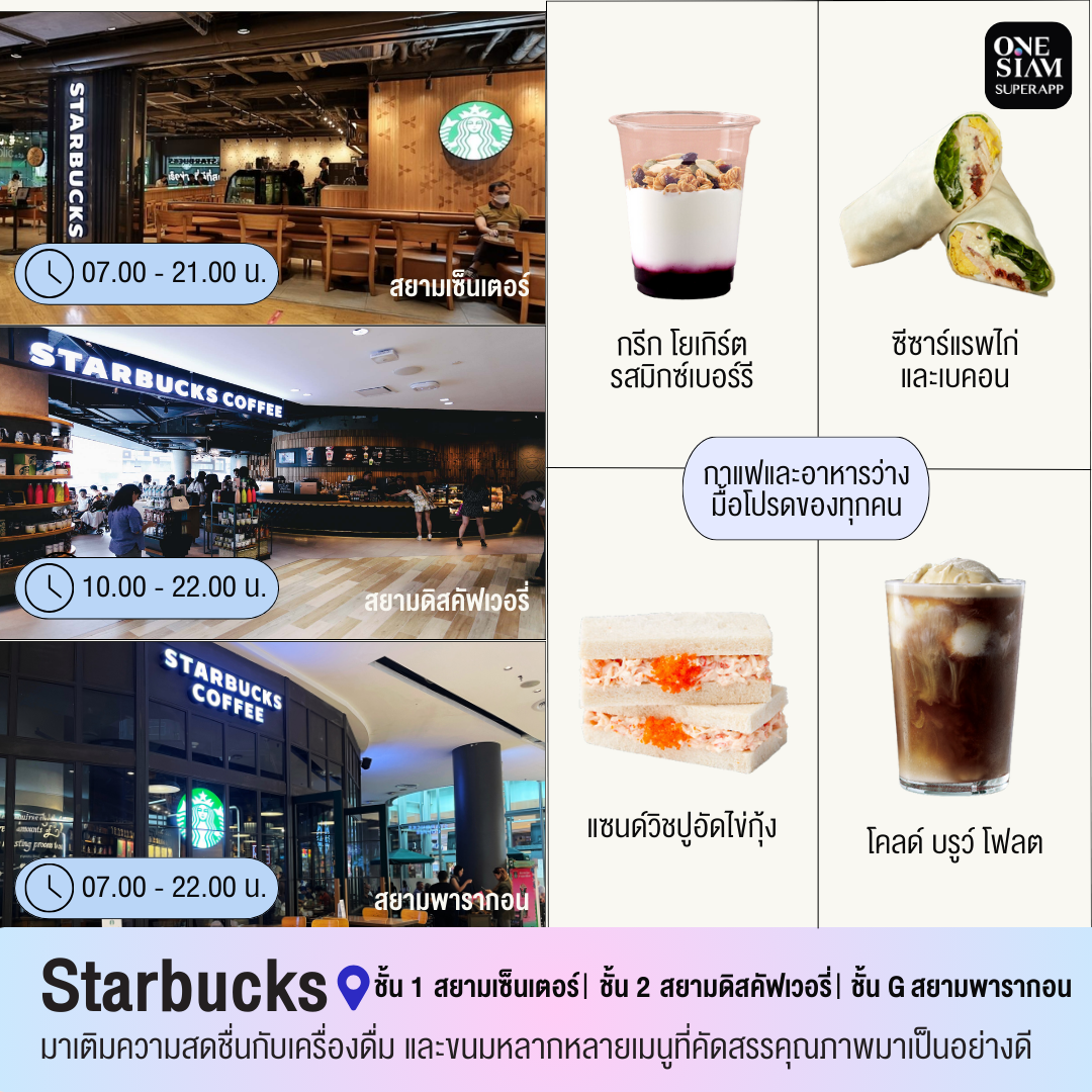 - Starbucks ชั้น 1 สยามเซ็นเตอร์ และชั้น 2 สยามดิสคัฟเวอรี่