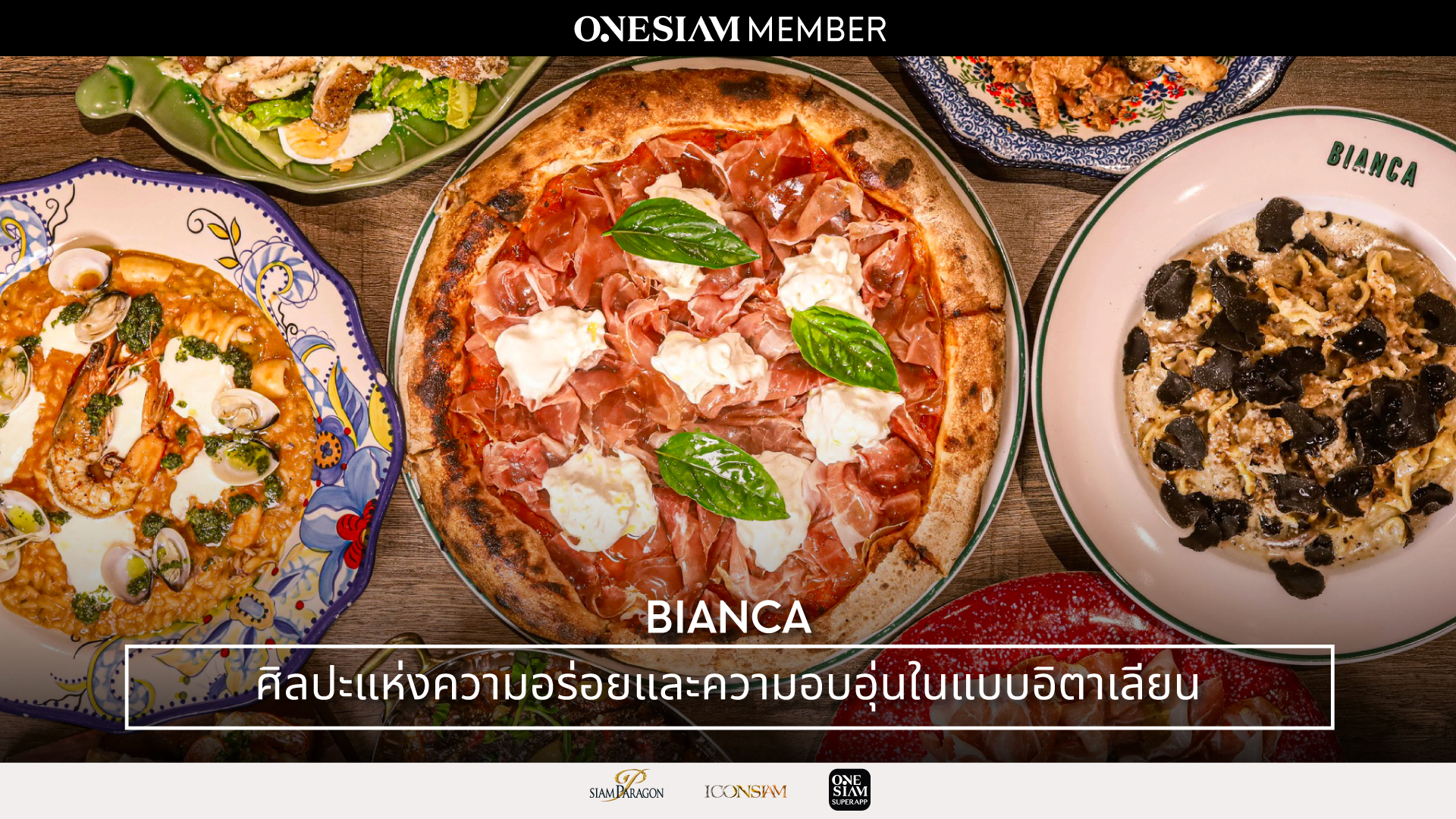 สัมผัสรสชาติอาหารอิตาเลียนโฮมเมดระดับพรีเมียมที่รังสรรค์จากวัตถุดิบคุณภาพจากทั้งในและต่างประเทศ ทำสดใหม่ทุกจานรับประทานได้ตลอดวัน ภายใต้บรรยากาศโคซี่สุดอบอุ่น สบายๆ สไตล์อิตาเลียน ที่ร้าน BIANCA ชั้น G สยามพารากอน และชั้น 6 ไอคอนสยาม พร้อมสิทธิพิเศษสำหรับสมาชิก ONESIAM เมื่อช็อป 500 บาทต่อใบเสร็จ รับสิทธิ์ลุ้นทานฟรี มูลค่า 3,000 บาท รวม 33 รางวัล ตั้งแต่วันที่ 1 ต.ค. 68 - 31 ต.ค. 68