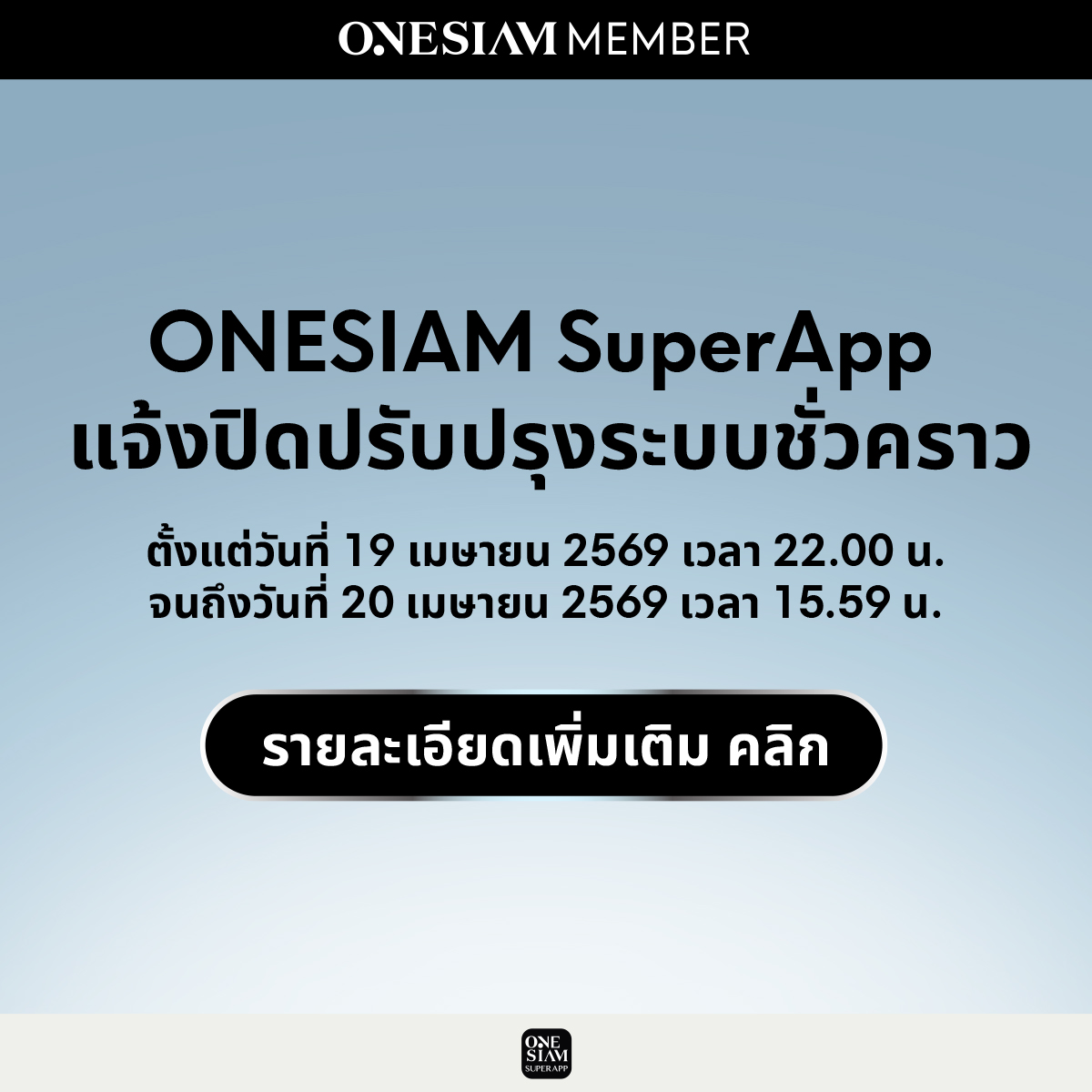 ONESIAM SuperApp แจ้งปิดปรับปรุงระบบชั่วคราว