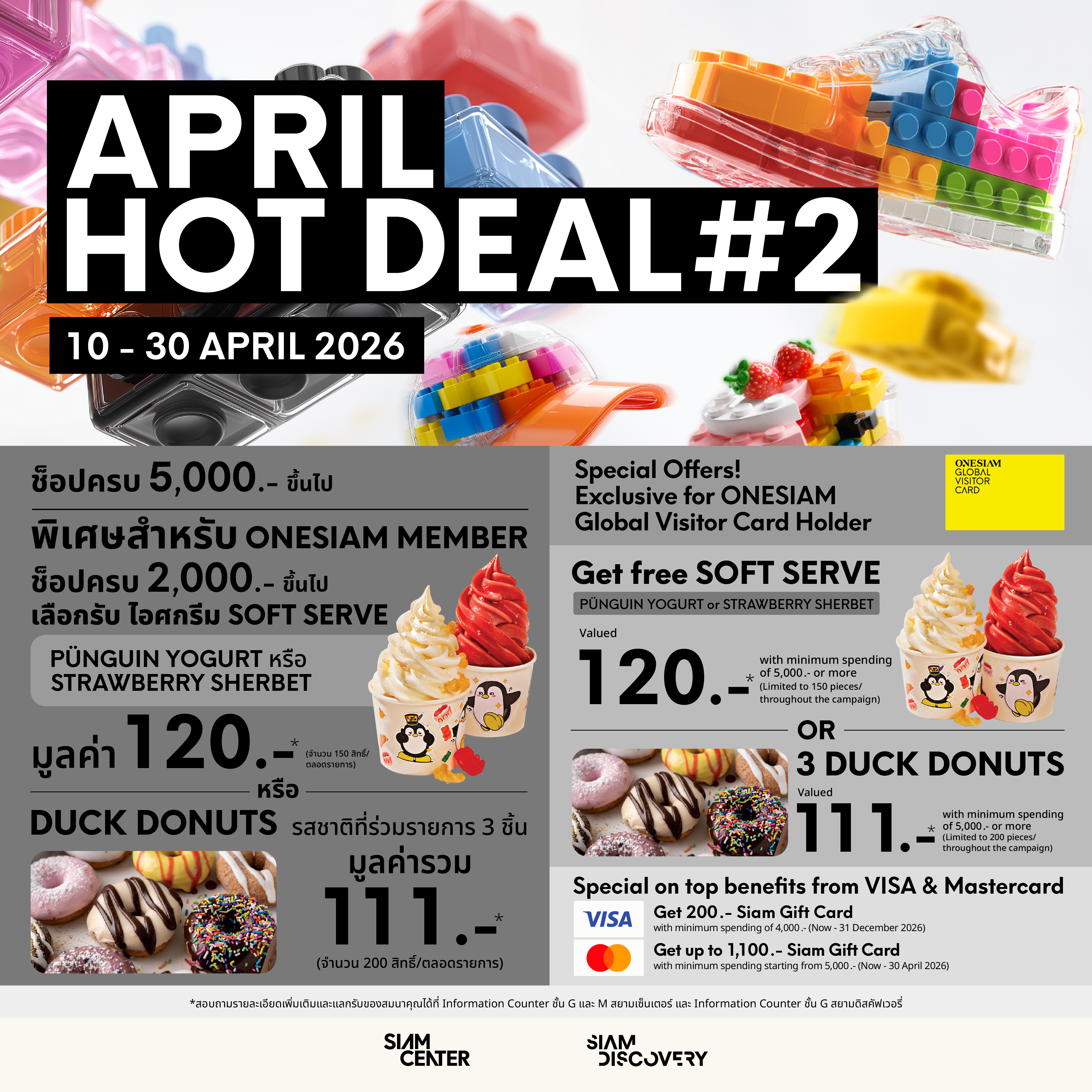 สิทธิพิเศษสำหรับสมาชิก ONESIAM เมื่อใช้จ่ายที่ศูนย์การค้าสยามพารากอน สยามเซ็นเตอร์ และสยามดิสคัฟเวอรี่ ตั้งแต่ 1 เม.ย. 69 – 31 พ.ค. 69