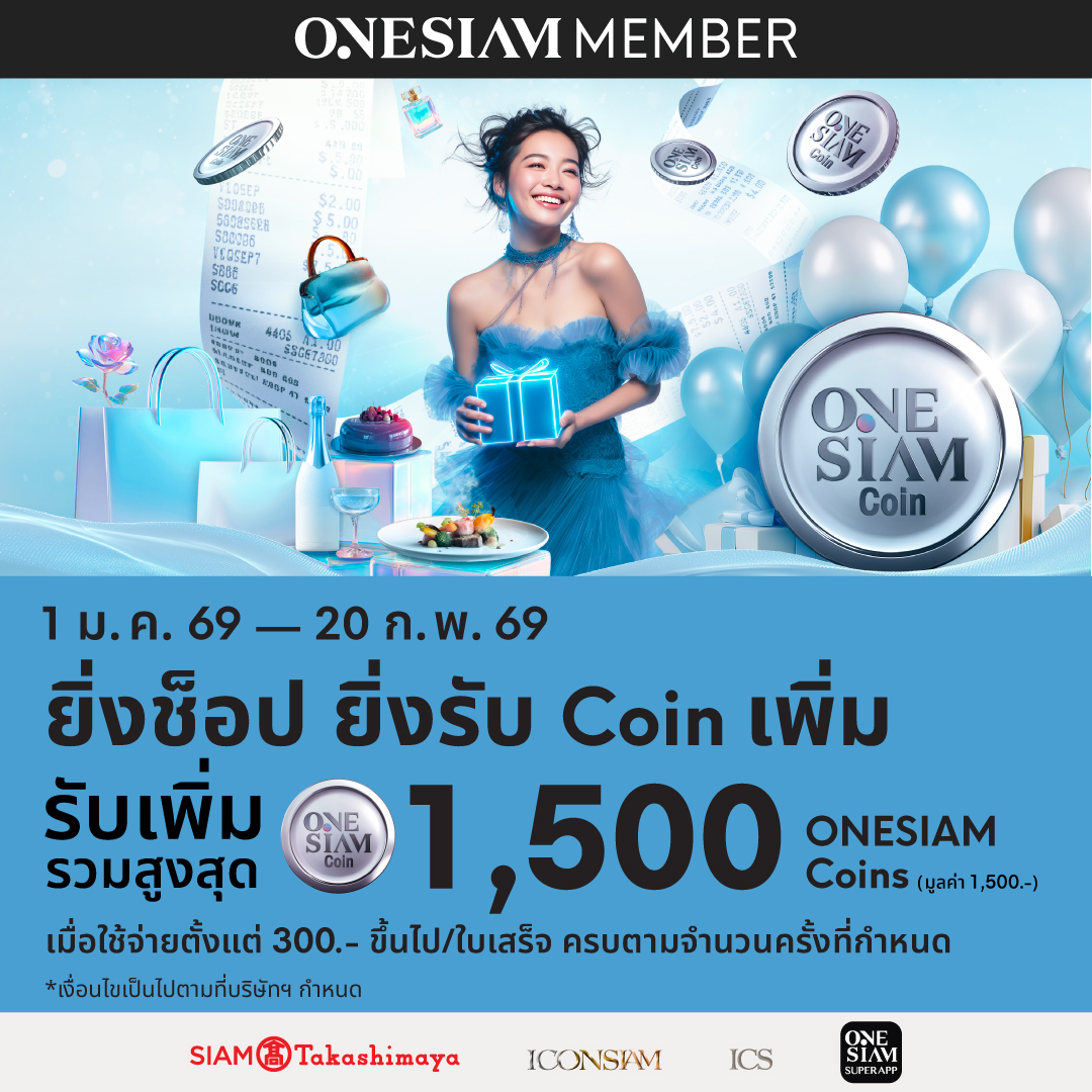 ยิ่งช็อป ยิ่งรับ ONESIAM Coin เพิ่ม รวมสูงสุด 1,500 ONESIAM Coins