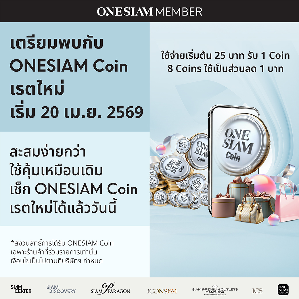 ONESIAM Member เตรียมพบกับ ONESIAM Coin เรตใหม่พร้อมกัน 20 เมษายน 2569 ใช้จ่ายเริ่มต้น 25 บาท รับ 1 Coin