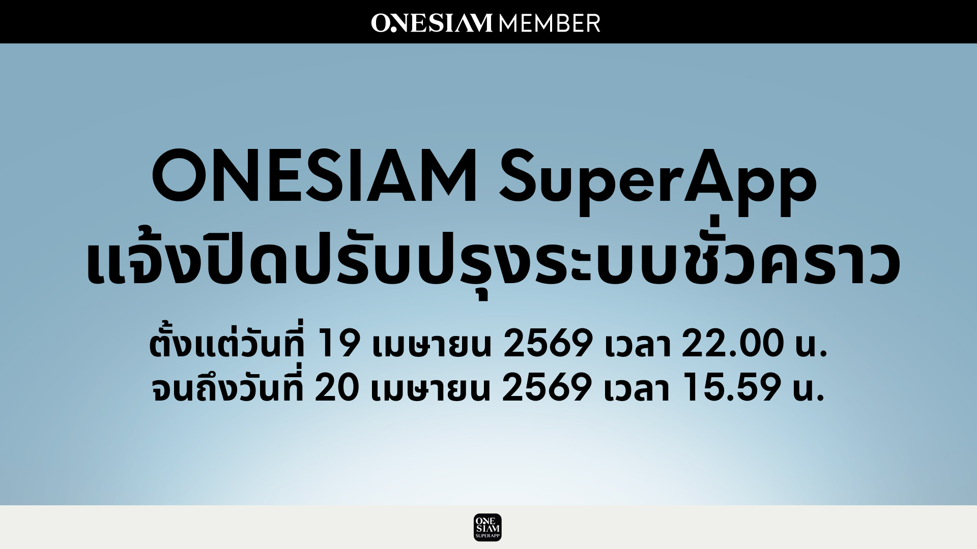 ONESIAM SuperApp แจ้งปิดปรับปรุงระบบชั่วคราว