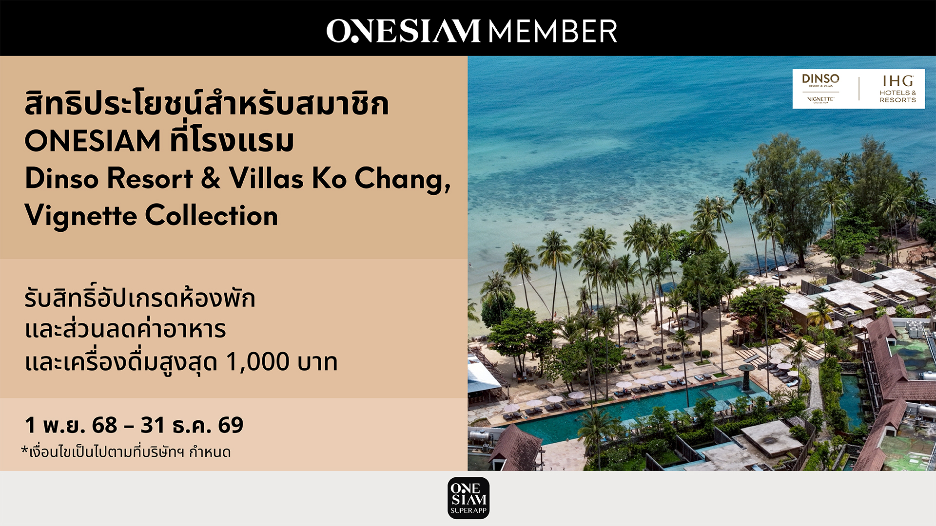 สิทธิพิเศษสำหรับสมาชิก ONESIAM ที่โรงแรม Dinso Resort & Villas Ko Chang, Vignette Collection วันที่ 1 พฤศจิกายน 2568 – 31 ธันวาคม 2569