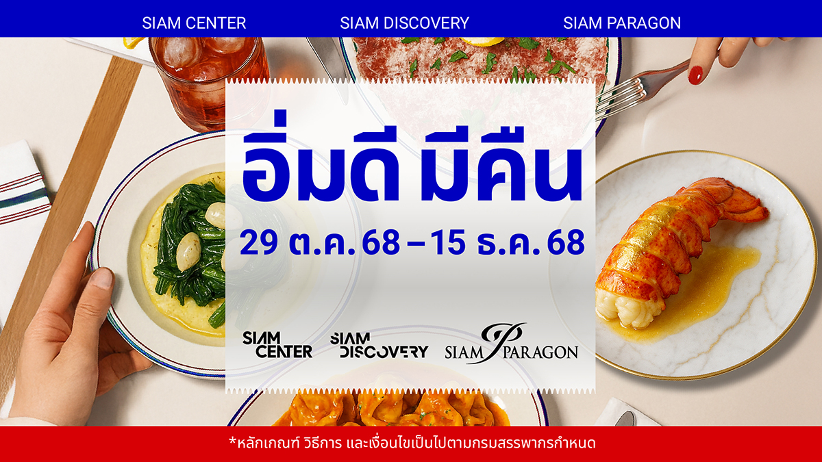 และ "SIAM CENTER - SIAM DISCOVERY STARVING HACK DEALS" รับทันที SIAM GIFT CARD มูลค่าสูงสุด 300 บาท* เมื่อรับประทานอาหารในร้านที่ร่วมรายการ ตั้งเเต่ 1 ต.ค. 68 – 30 พ.ย. 68 คลิก