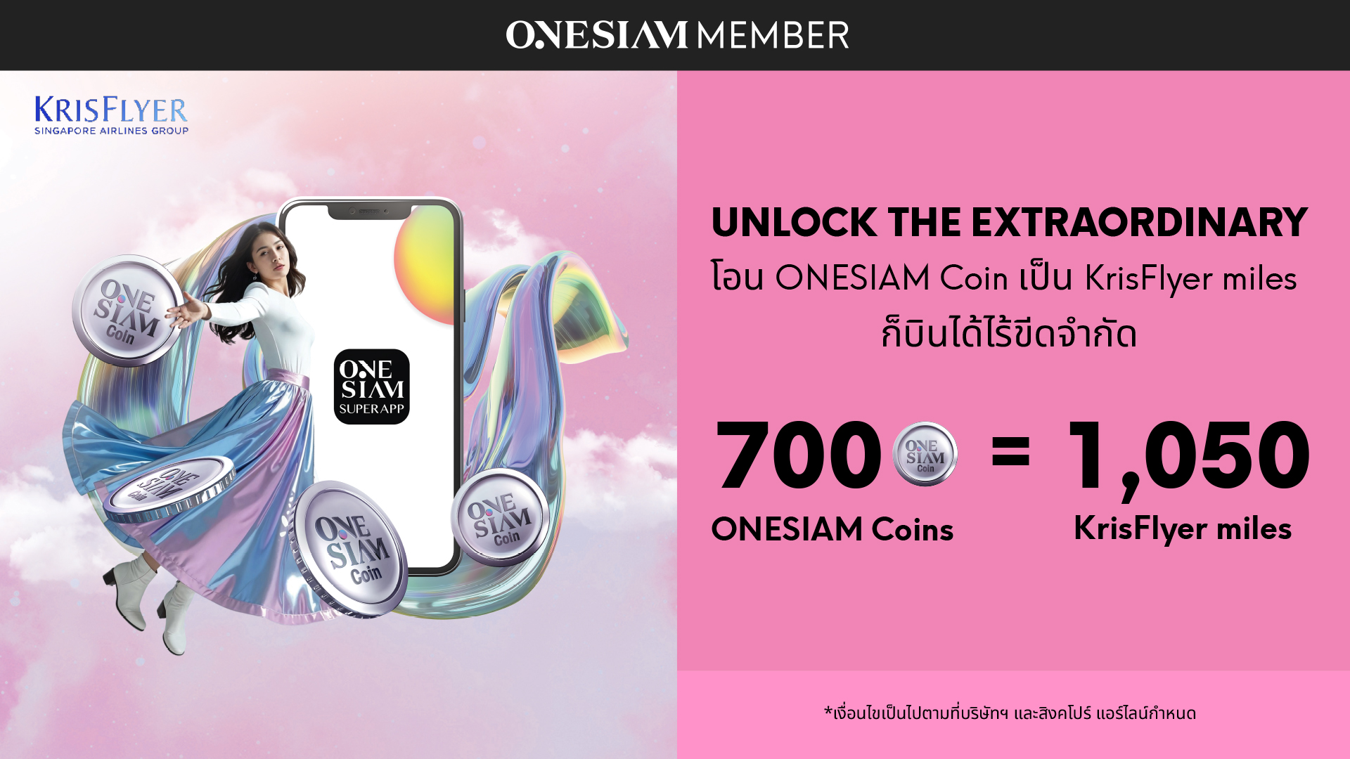 700 ONESIAM Coins = 1,050 KrisFlyer miles starting July 28, 2025 onwards