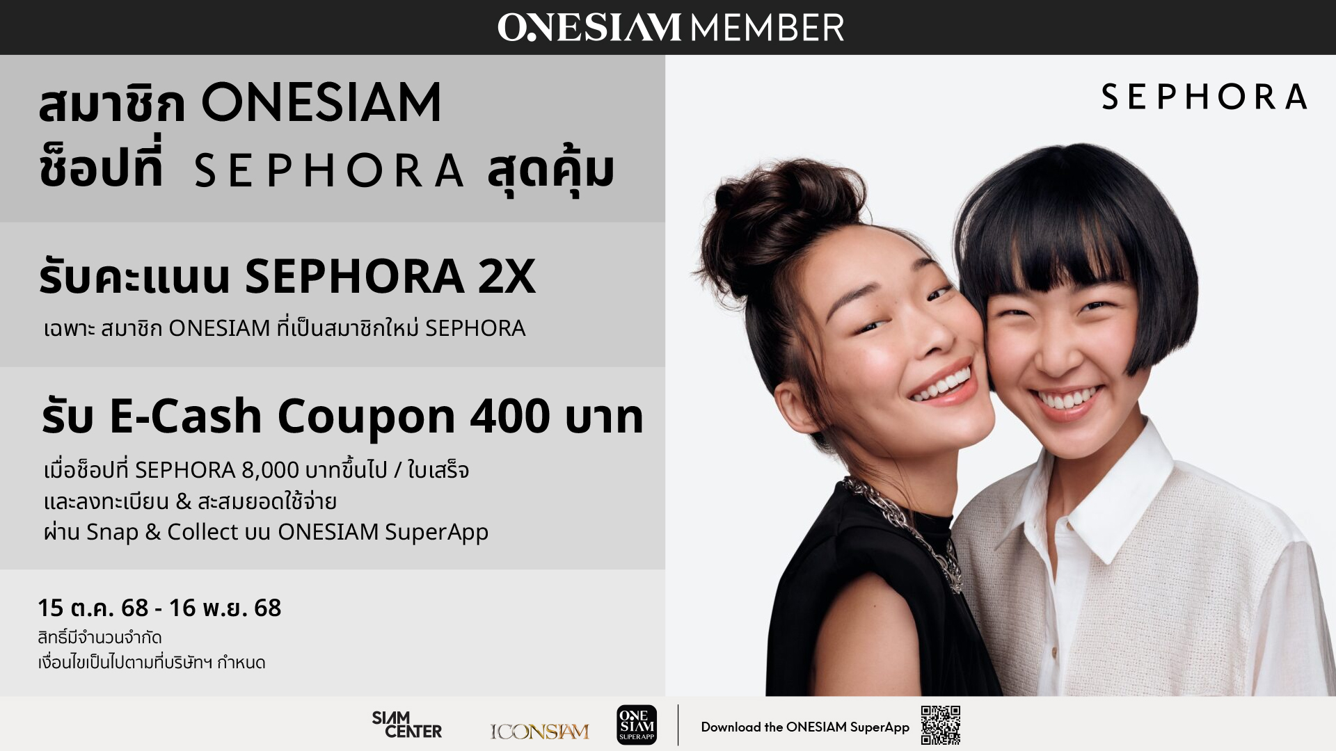 พิเศษเฉพาะONESIAM และเป็น สมาชิกใหม่ SEPHORA รับคะแนน Sephora 2X