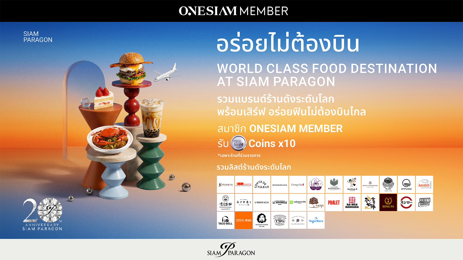 - สิทธิพิเศษสำหรับสมาชิก ONESIAM ที่มี ONESIAM SuperApp ที่ลงทะเบียนเข้าร่วมโปรโมชันและสะสมยอดภายในวันที่ใช้จ่ายที่ร้านค้าหมวดร้านอาหารที่ร่วมรายการในสยามพารากอน ระหว่างวันที่ 7 เม.ย.69 – 19 เม.ย.69