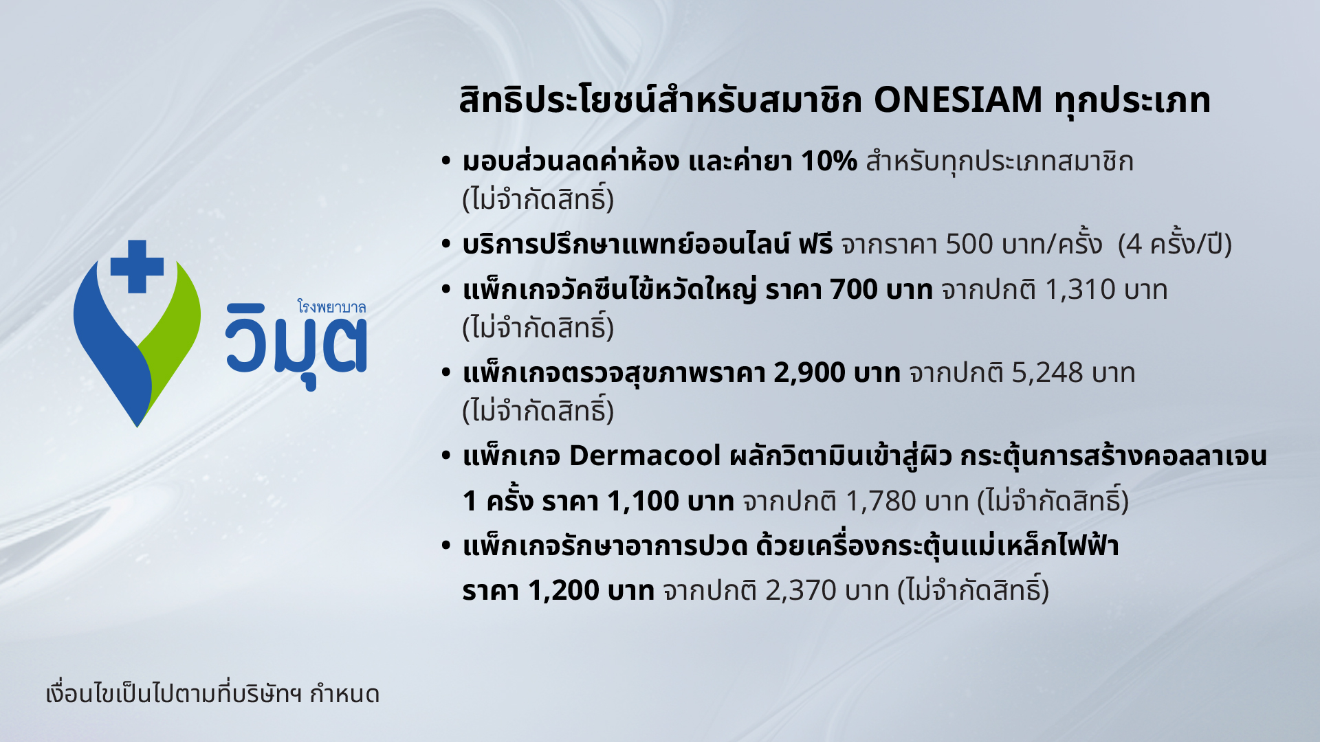 สิทธิประโยชน์สำหรับสมาชิก ONESIAM ที่โรงพยาบาลวิมุต พหลโยธิน